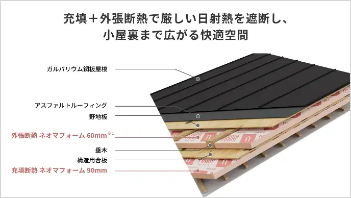 カビや結露に強い高性能断熱材「ネオマフォーム」を採用しており、快適な住環境を維持できます。また、第一種換気システムと組み合わせることで、日本最高レベルの温熱性能を実現します。