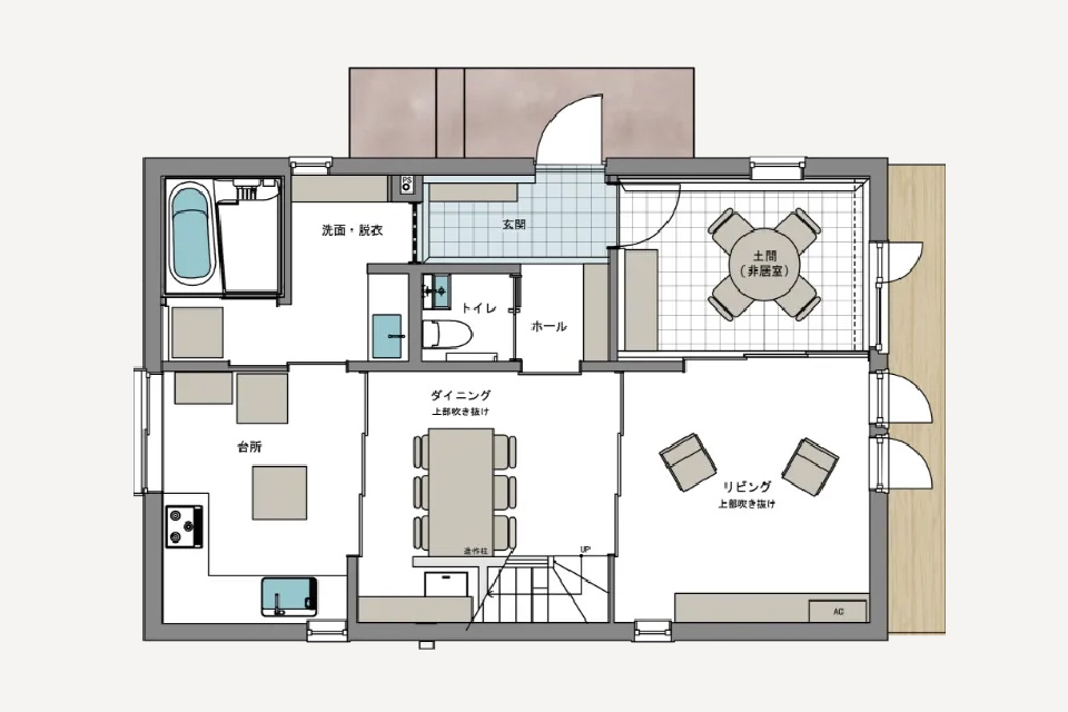 Asu-hausの世界基準の断熱・気密、換気性能等の温熱性能で、エアコン1台で家のどこでも快適な生活を叶えます。