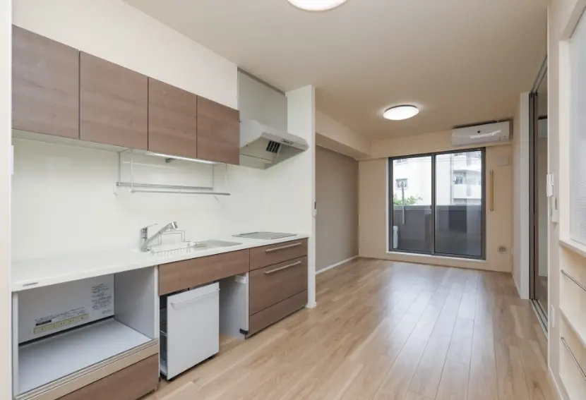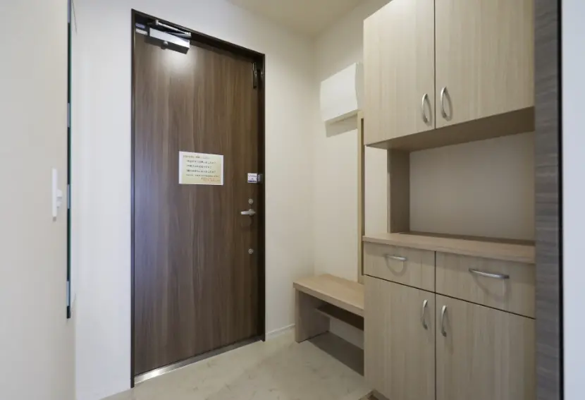 居室仕様設備 | キッチン(IHヒーター付)・エアコン・洗面化粧台・洗浄暖房便座付トイレ・緊急通報装置・コート掛け・玄関収納・収納・浴室(浴室乾燥暖房機能付)・自動火災報知機・洗濯機置き場・ベランダ物干しフック・室内物干しフック・録画機能付テレビドアホン・インターネット完備(wi-fi)・UHF/BS |