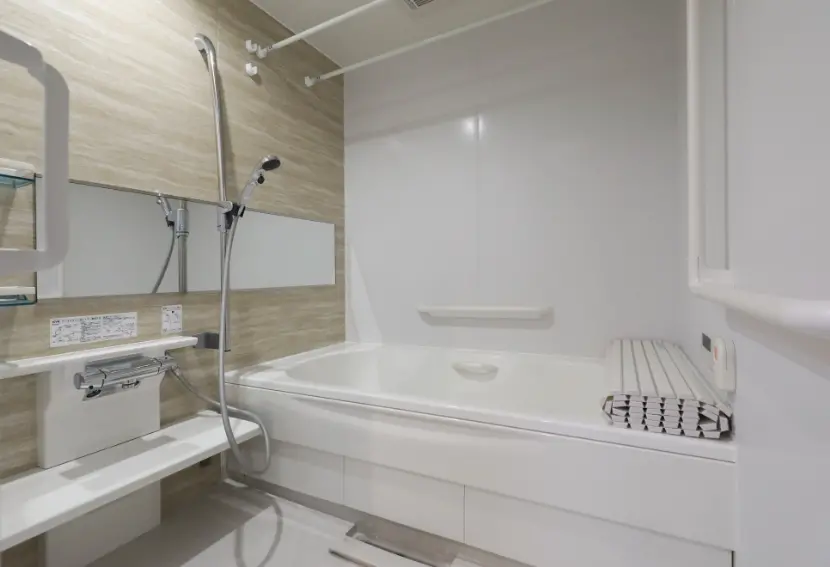 居室仕様設備 | キッチン(IHヒーター付)・エアコン・洗面化粧台・洗浄暖房便座付トイレ・緊急通報装置・コート掛け・玄関収納・収納・浴室(浴室乾燥暖房機能付)・自動火災報知機・洗濯機置き場・ベランダ物干しフック・室内物干しフック・録画機能付テレビドアホン・インターネット完備(wi-fi)・UHF/BS |