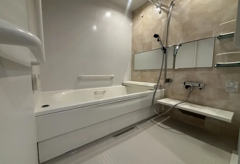 居室仕様設備 | キッチン(IHヒーター付)・エアコン・洗面化粧台・洗浄暖房便座付トイレ・緊急通報装置・コート掛け・玄関収納・収納・浴室(浴室乾燥暖房機能付)・自動火災報知機・洗濯機置き場・ベランダ物干しフック・室内物干しフック・録画機能付テレビドアホン・インターネット完備(wi-fi)・UHF/BS |