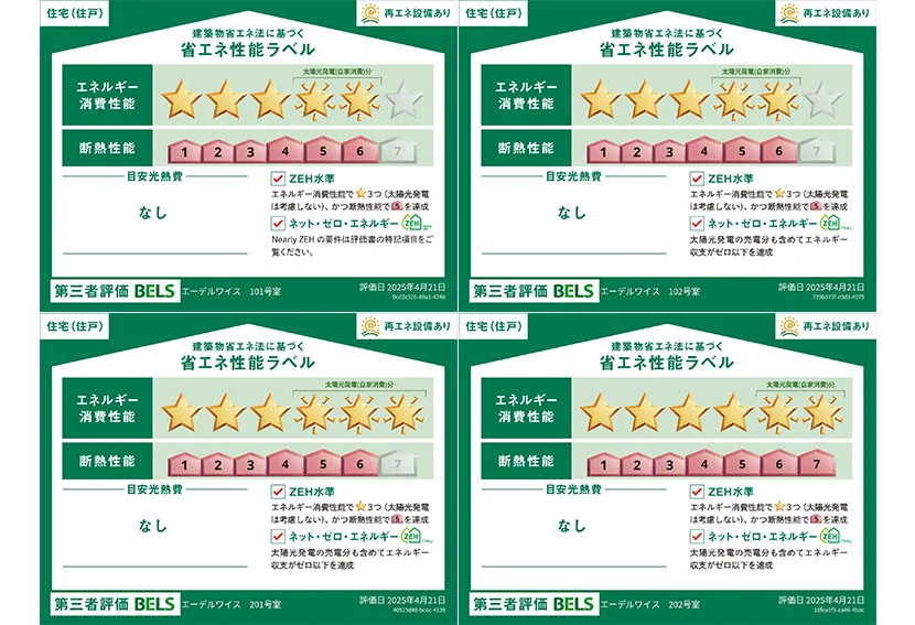 住棟57%削減、101号室46%削減、102号室49%削減、103号室50%削減、105号室47%削減、201号室52%削減、202号室60%削減、203号室59%削減、205号室56%削減、301号室53%削減、302号室58%削減、303号室58%削減、305号室55%削減 |