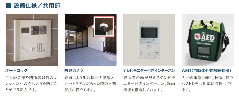 共用部設備 | オートロック・共用エレベーター・共用コミュニティースペース・AED |