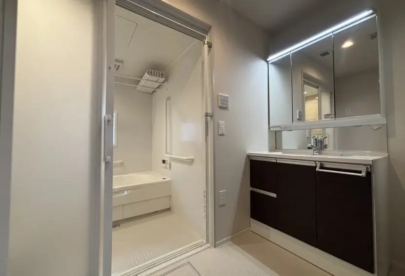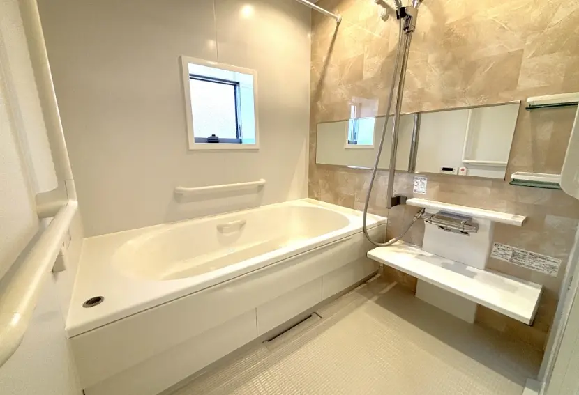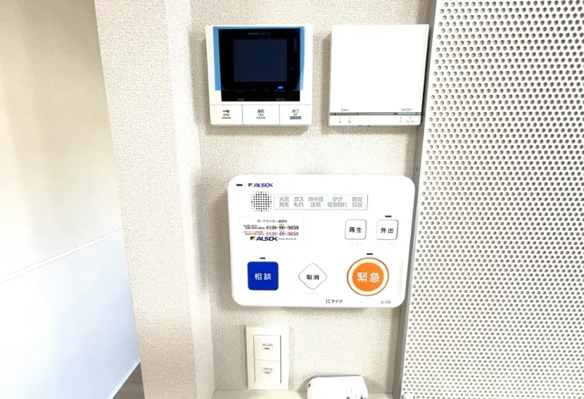 居室仕様設備 | キッチン(IHヒーター付)・エアコン・洗面化粧台・洗浄暖房便座付トイレ・緊急通報装置・コート掛け・玄関収納・収納・浴室(浴室乾燥暖房機能付)・自動火災報知機・洗濯機置き場・ベランダ物干しフック・室内物干しフック・録画機能付テレビドアホン・インターネット完備(wi-fi)・UHF/BS |
