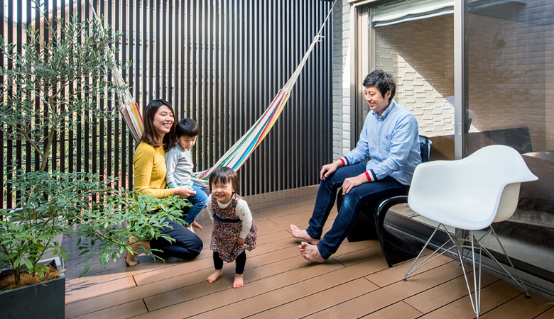 吹き抜けやバルコニーなどこだわりを実現した40坪台の共働き二世帯住宅