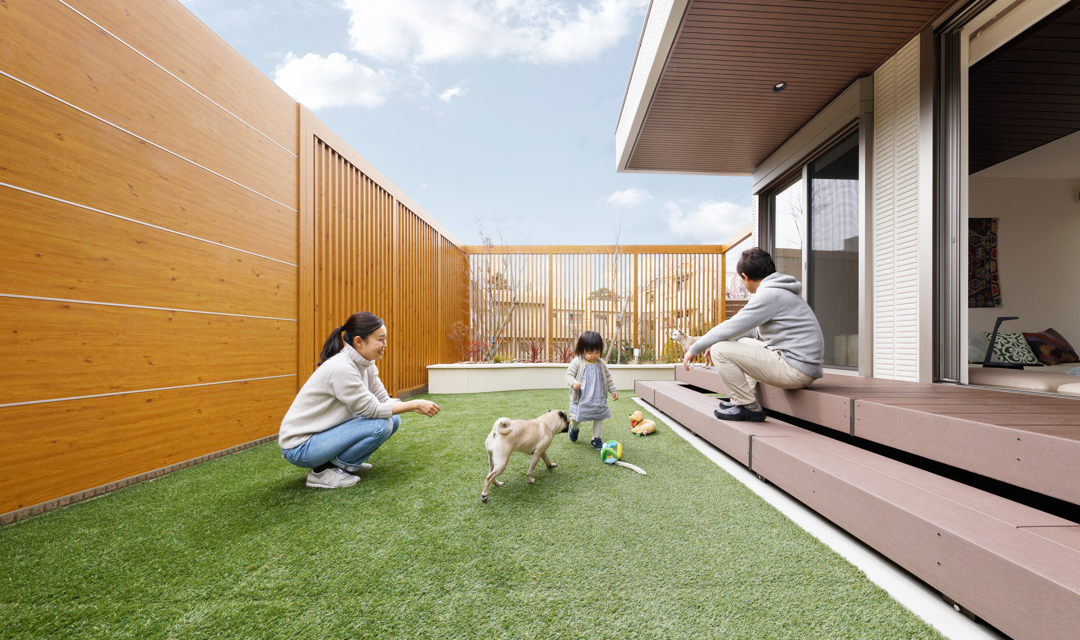 家族や愛犬と一緒の時間を大切に。愛車用ホビールームなど多彩な空間を実現