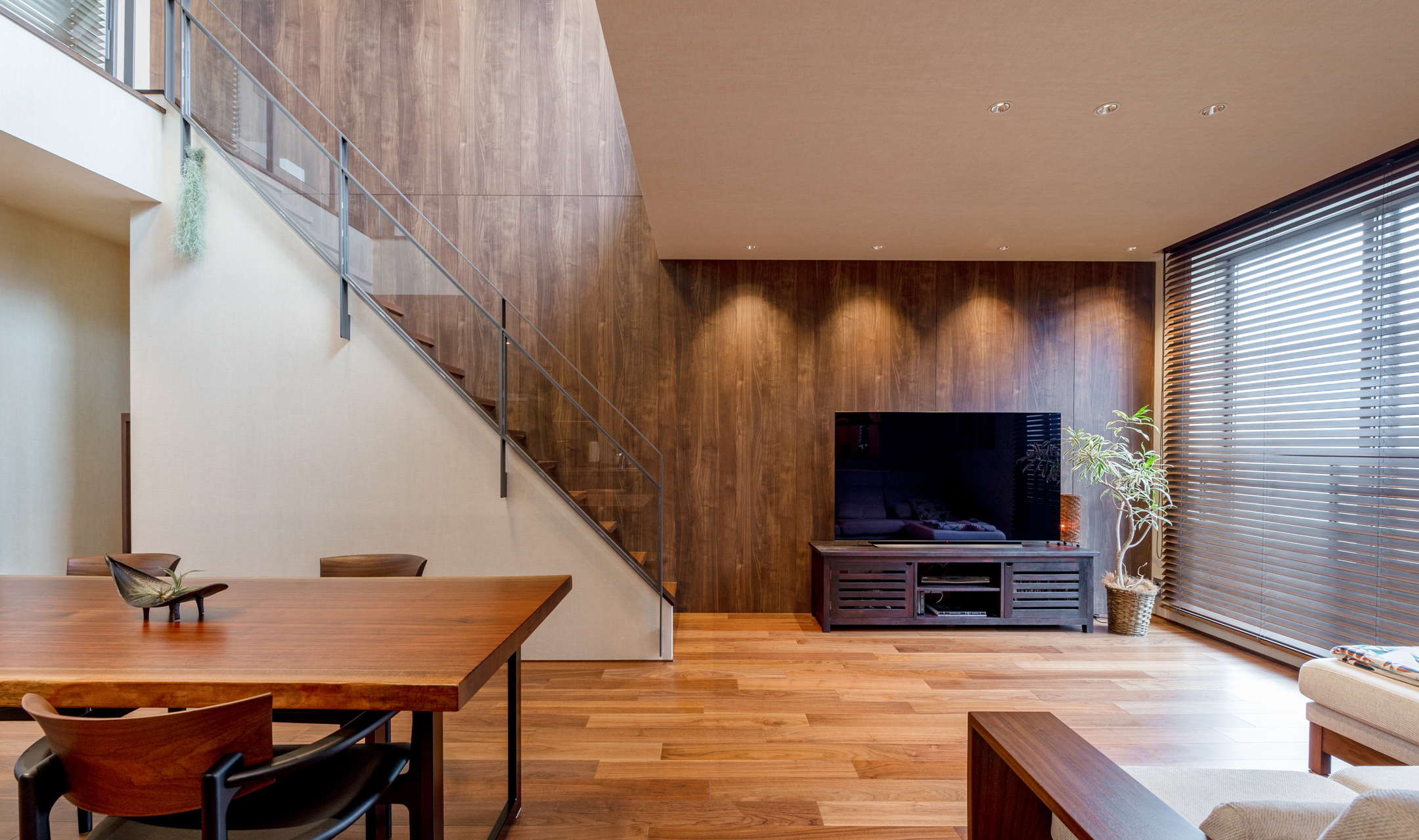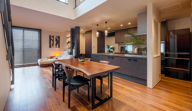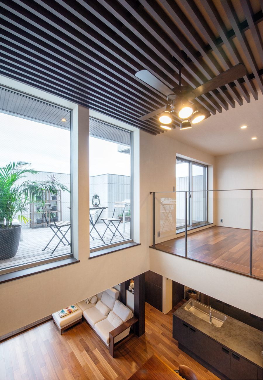 モダンな3階建てのなかに、ヴィラのような心地よいリゾート空間が広がる家