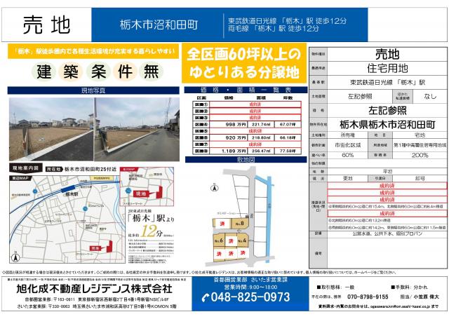 栃木駅徒歩圏内の大型分譲地。8区画を販売します。