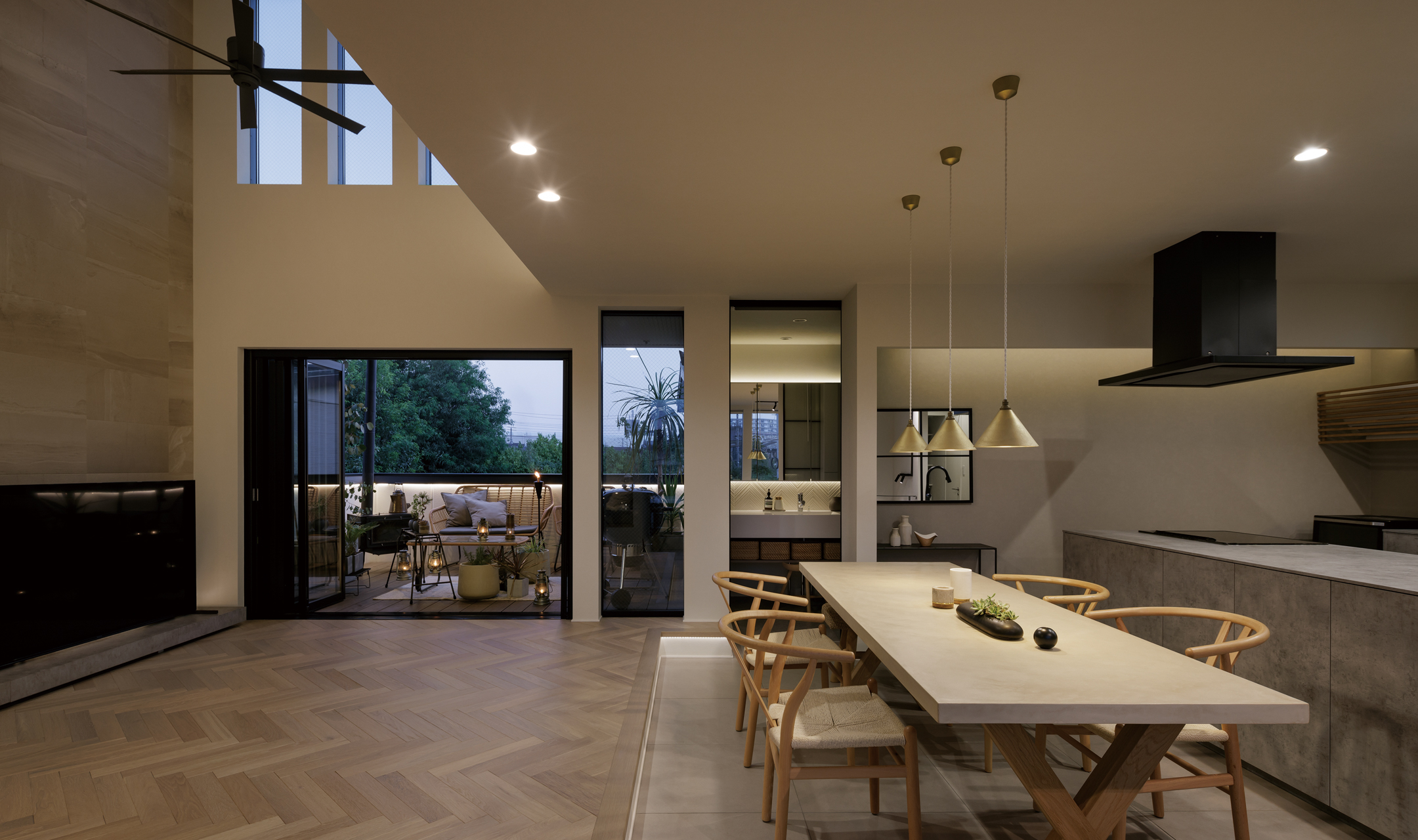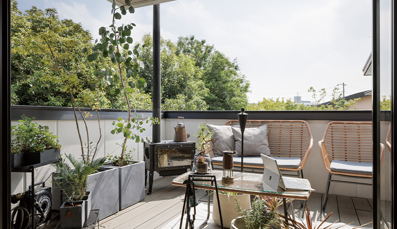 2階リビングにアウトドア空間を併設し、光と風、眺望を楽しむ暮らし