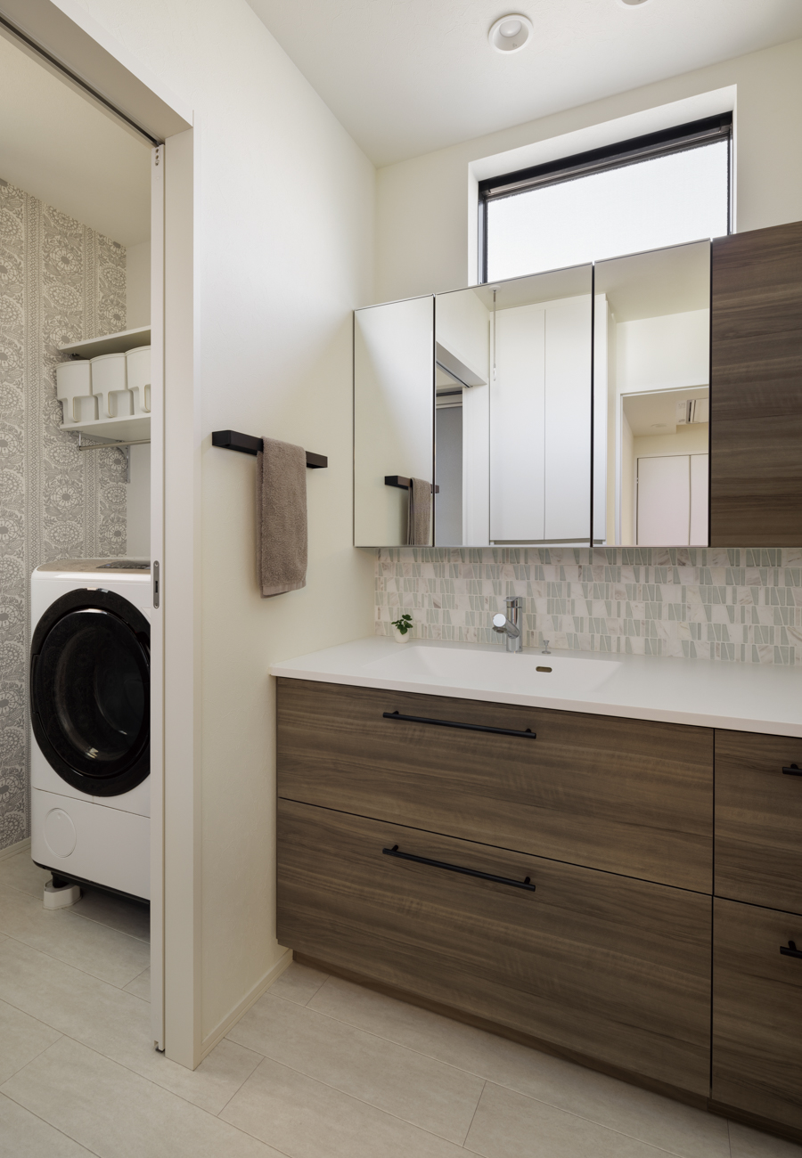 バスルームやランドリールームなどをキッチンの近くに配置し、回遊できる間取りに。