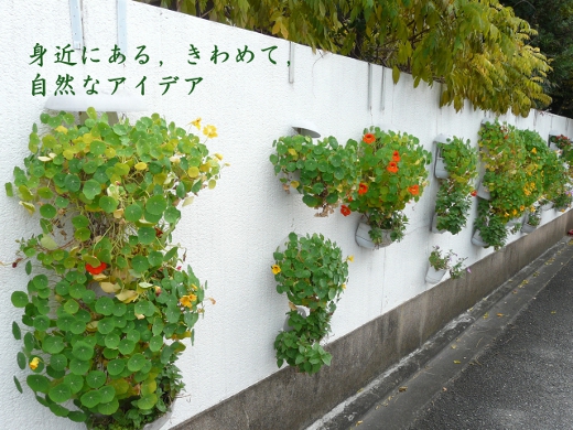 アンケートの内容に戻りますが、町の景観との調和を考慮しましたかと聞いたところ、考慮していないという回答が半数もあり、この辺が課題だろうと考えます。しかし、ちょっとした思い付きでこのようなこともやられています。これも一種の壁面緑化ということが言えるだろうと思います。【右スライド参照】