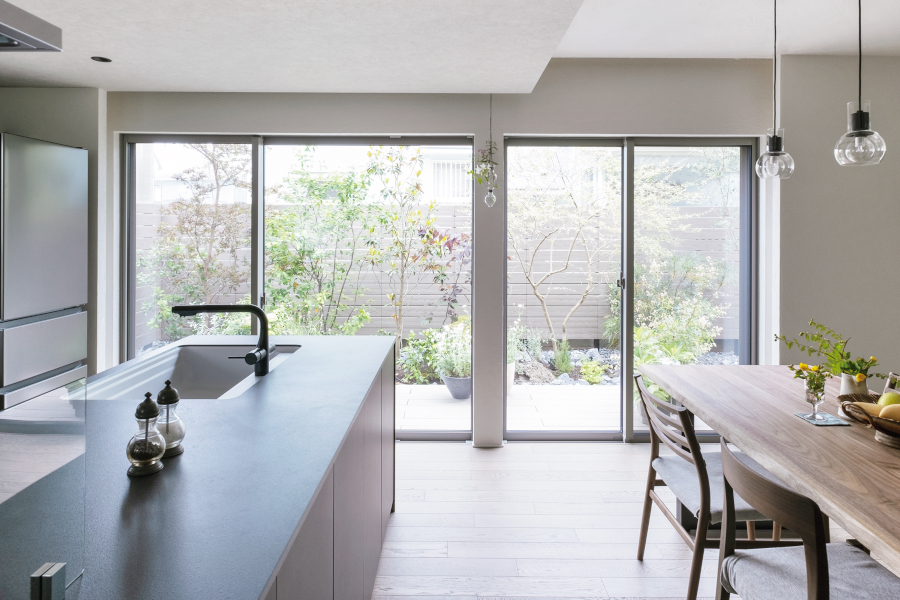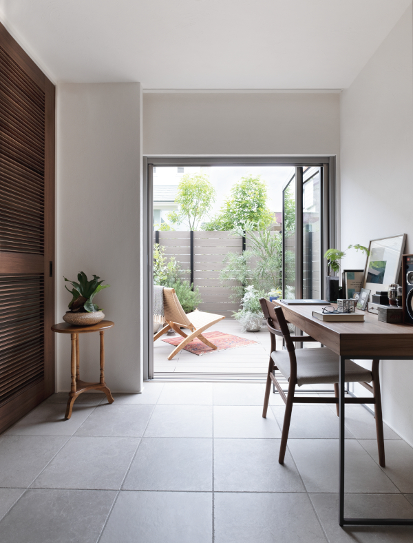 新採用の窓や、外からの視線を遮る工夫によって、光・風・緑・空などの自然を感じ、家族の気配を感じながらゆったりとした家時間を過ごせる居心地の良い3つの〈間〉を創出しました。