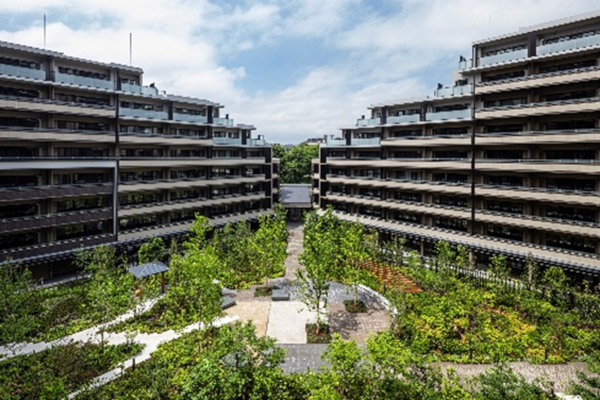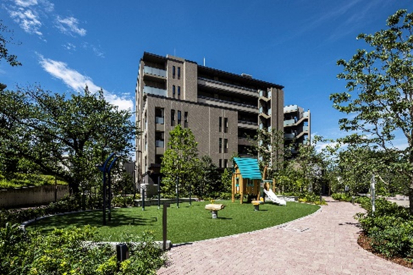 プラウドシティ小竹向原は、向原第二住宅団地の老朽化に伴うマンション建替え事業として再生した500邸の大規模レジデンスです。かつての団地時代から受け継がれる豊かな緑や地域コミュニティを活かし、「都市と自然」「人と人」「過去から未来」をつなぐ新しい多世代型レジデンスを実現しました。既存樹のケヤキ並木や広大な中庭、公開広場など、地域と調和したランドスケープを創出するとともに、建替前の居住者や新たな住民、地域住民が世代を超えて交流できる多彩な共用空間やコミュニティイベントも計画しています。さらに、既存樹の再利用をふくめた生物多様性への配慮などにより、持続可能な街づくりを目指しました。また、半世紀にわたり培われた「土地の記憶」と地権者の知見を活かし、未来へと続く新たな価値を提案しています。